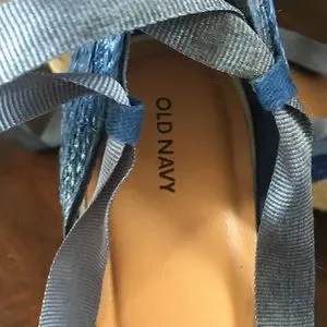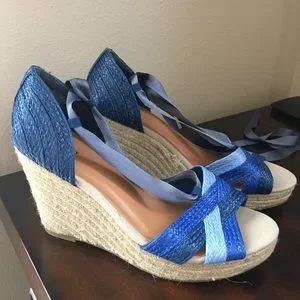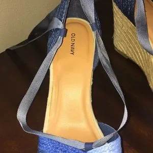 NWOT OLD NAVY Lace Up Espadrille Wedge Peep Toe Blue Sandals - Size 10