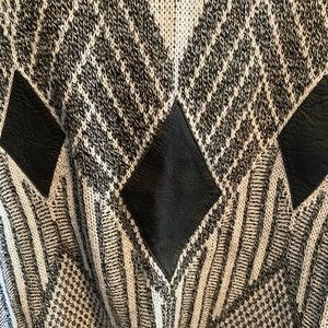 Barnaby Sweater. No size tag but fits like a men’s XL. Leather Diamond patches as pictured.