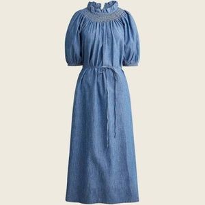 NWT J. Crew Smocked-Neck Puff-Sleeve Chambray Midi Dress - Size M