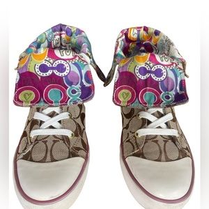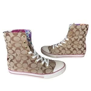 Coach Bonney Poppy high top converse style gold over sneakers Sz7