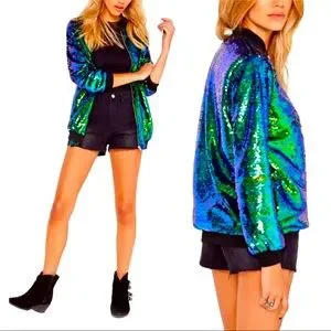 Mermaids color sequined boomer jacket with black trim xl zip up