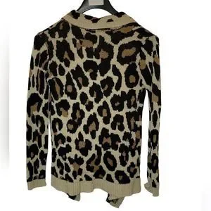 Say What? Animal Print Cardigan Size Medium color tan and black, long sleeve, knit, open front, no pockets, 100% acrylic pit to pit 18" length 29" excellent preowned condition (N43)😊