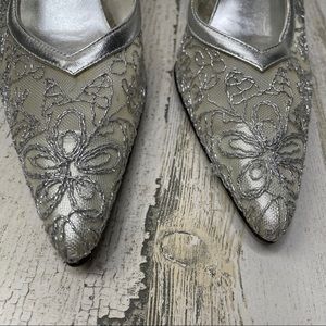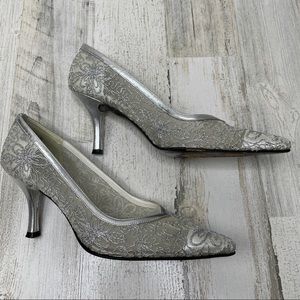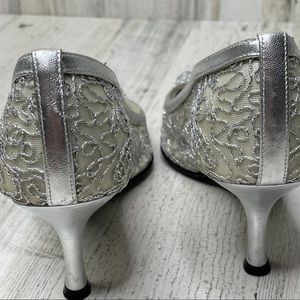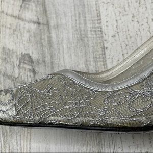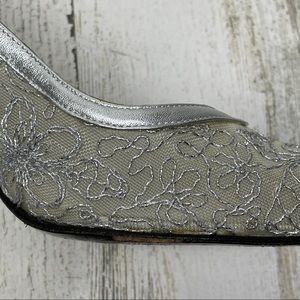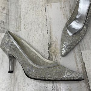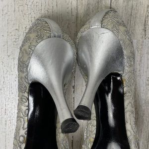 Stuart Weitzman silver mesh lace heels 7.5M (fits like 7)