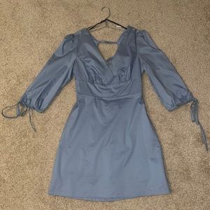 Lulu’s Dream About Me Dusty Blue Backless Mini Dress