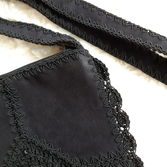 Darling Vintage BOHO-CHIC Frankie & Johnnie black suede and crochet shoulder bag. Small and light-weight. Great used condition!