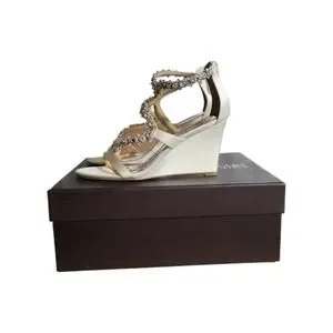 Badgley Mischka Womens Bennet Sandals White Satin Wedge Heels Rhinestone 7 New