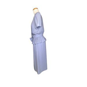 Albert Nippon Petites Blouse and Skirt Set Chiffon Pleated Top Blue 70s Vintage.