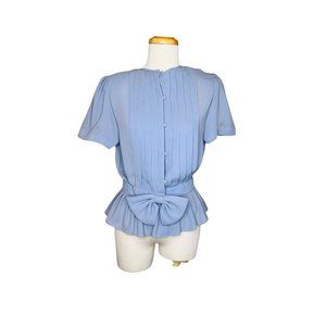 Albert Nippon Petites Blouse and Skirt Set Chiffon Pleated Top Blue 70s Pristine