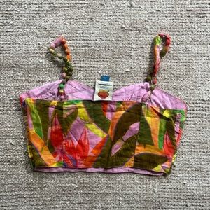 Gorgeous FARM Rio top with slight damage to the straps (the gold thread keeping the balls in place has fallen off)