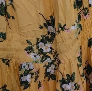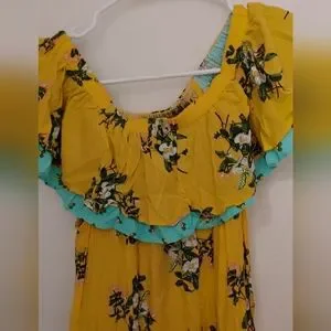 Matilda Jane Hooked on a Feeling yellow floral dress .Embrace a sunny sense of style with this Breezy Print- splashed dress. flaunting a playful off shoulder bodice and handkerchief he.m elastic waist with turquoise accents Size zsmall NWT. Pit-Pit 17 ins acrosd. length 40 ins 100%Rayon