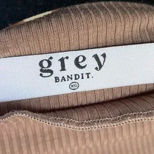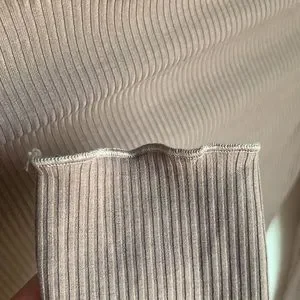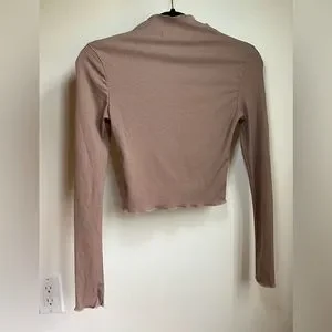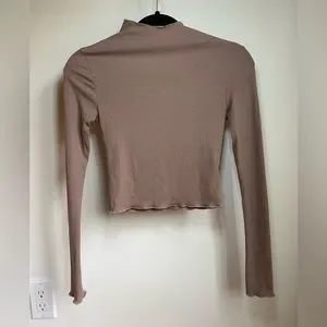 Tan / Taupe Ribbed Lettuce Trim Mock Turtle Neck Long Sleeve Top ( size XS )