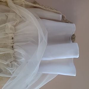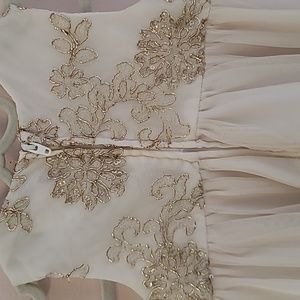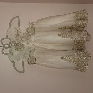 Formal dress with gold detail and sparkling ribbon. Perfect for multiple occasions such as wedding, baptism, birthday, church etc. no stains, like new, underpants never worn