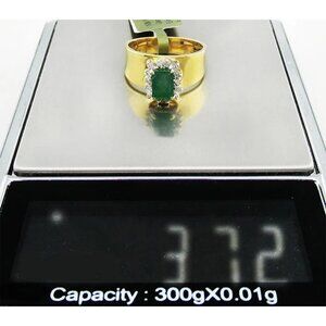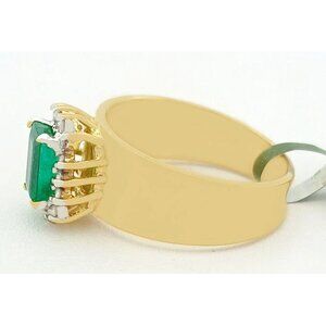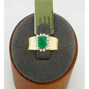 Genuine 0.82 Cts Emerald & Diamonds Ladies Ring 14k Gold