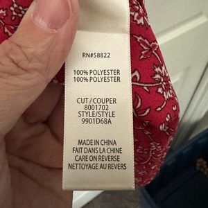 NWT! From Max Studio, red print mid-length dress with attached belt. Sleeves are slightly dolman with ruffle.