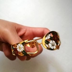 Vintage 1970's Enamel Cloisonne Goldtone Flower Hidden-hinge Bracelet