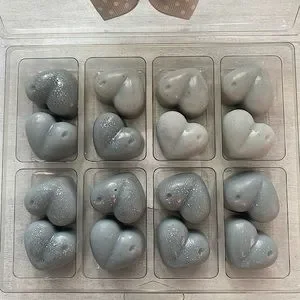 16 x love heart wax melts in the scent puppy snuggles. A fresh, clean floral accord with sparkling citrus.