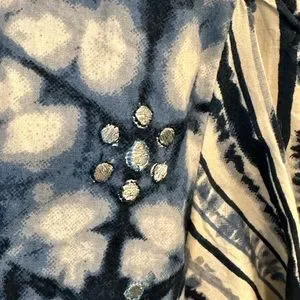 NWT Anthropologie Not So Serious Dress Blue and white with Silver embroidery. P2P 20.5” Shoulder to Hem 37”