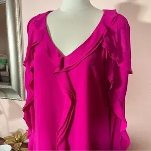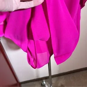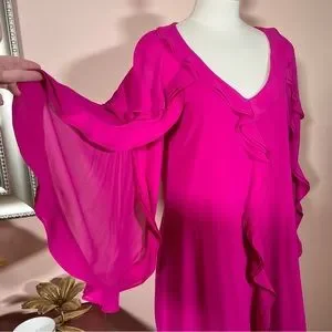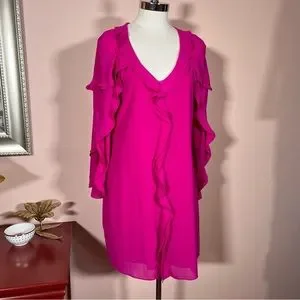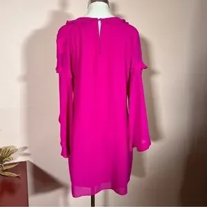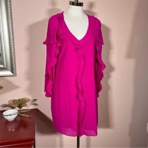 NEW Belle Badgley Mischka Magenta Long Sleeve Ruffle front Mini cocktail Dress