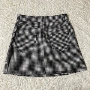 Fitted skirt in black and white gingham print with a button and zipper closure front, side and back pockets, slight stretch on the waist.