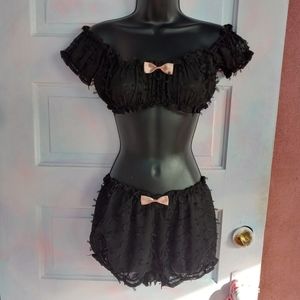 SOLD! Sheer DK off shoulder lingerie crop top & bloomers! Only tried on!