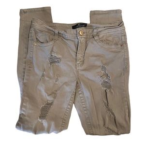 ALMOST FAMOUS DISTRESSED TAN SKINNY JEANS SIZE 11