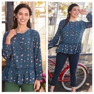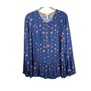Matilda Jane Dream A Little Dream Floral Polka Dot Blouse Blue Pink Size Medium