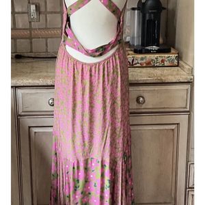 Free People Dewberry Floral Maxi Dress Printed Button Back CrossStrap Pink Olive