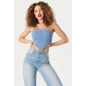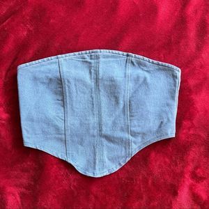 Strapless cropped denim corset