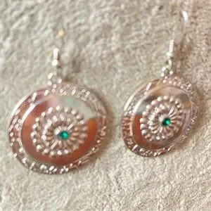 Silver Green Stone Fish Hook Earrings