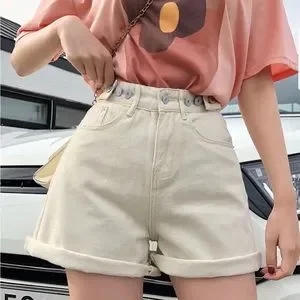 High Waist semi-elastic cream short in very good condition. Just need a little wash! It’s been sitting in my closet for a long time waiting on me to lose weight to fit, but it’s time to let it go now. I included some outfit ideas with similar shorts!