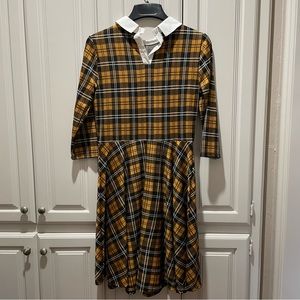 Knee length collared plaid dress. Never worn but was dry cleaned! NWOT