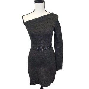 Forever 21 Womens Black Silver Shimmering One Shoulder Sweater Dress Size M