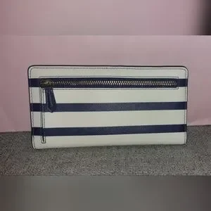 Kate Spade Staci Large Slim Bifold Wallet in Sailing Stripe ⛵️ White and Navy