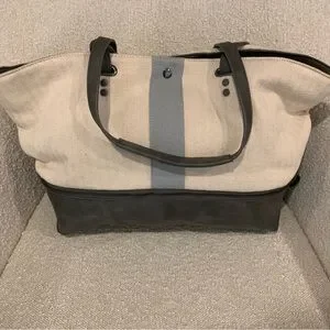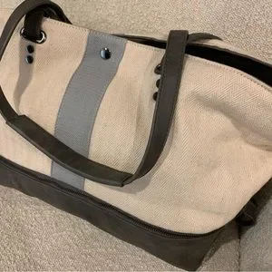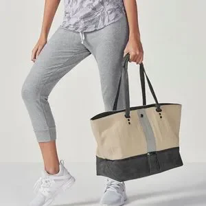 Fabletics The Canal Day Tote Duffle Travel Bag tan and grey