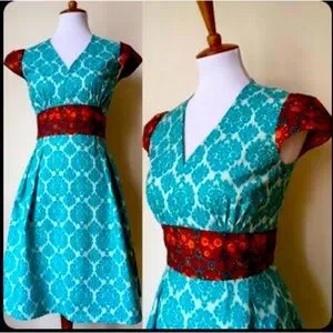 Glamcloud dress. Teal and red science dress. Size medium