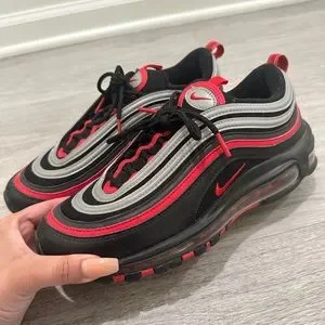 Used but in great condition men’s air max sneakers. Red black and grey