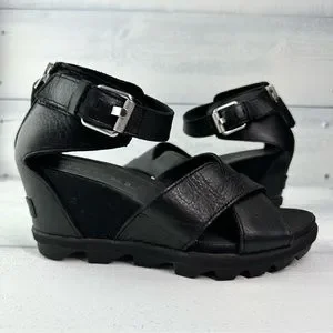 Sorel Joanie II Ankle Strap Wedge Sandal in Black