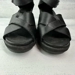 Take a stroll along the boardwalk or city streets in stylish comfort wearing this utilitarian wedge styled with a wide ankle strap and a cushy footbed.