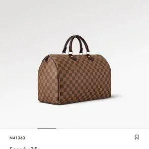 Speedy 35 Made from elegant Damier Ebene canvas, the Speedy 35 is a stylish handbag for both travel and daily use. Launched in 1930 as the "Express" and inspired by that era's rapid transit, today’s updated Speedy remains a timeless House icon, with its unmistakable silhouette, rolled leather handles and engraved, signature padlock. 13.8 x 9.1 x 7.1 inches