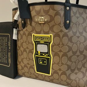 Brand new Coach x PAC-MAN cabinet brown signature tote.