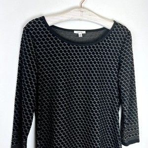 Sophie Max Boat Neck Top Size Medium 3/4 Length Sleeves Black and Gray Print Excellent Preowned Condition