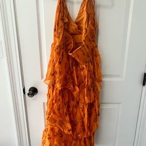Anthropologie Pamela Halter Midi Dress | Orange Floral Tiered, NWT Size 14