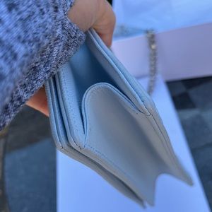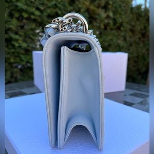 Purchased in London! Gently used pale blue grained calfskin leather Christian Dior. Includes the original box. Slight darkening on the back from wearing against body but have not attempted to clean this leather. Selling on behalf of a client. I physically photographed these images. She’s stunning. ❤️
