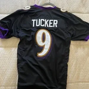 Baltimore Ravens black jersey signed by kicker Justin Tucker. Never worn.