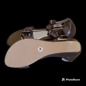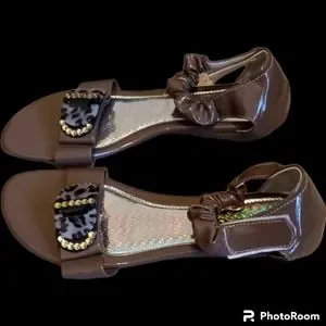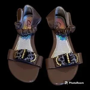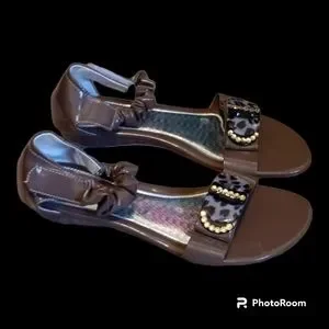 Clark's Brown Thailand Sandals with Ankle Strap. Gold hardware and leopard print detailing.