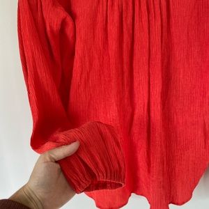Free People S Red Gauzy Wrap Check On It Blouse Top