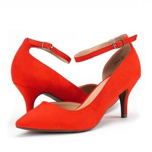 Dream Pairs Women's Red Suede Low Heel Dress Pump