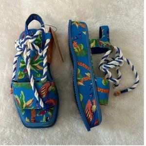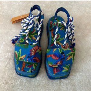 Farm Rio Macaw Ankle Tie Platform Sandals