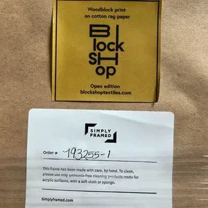 Beautiful, professionally framed hand block print by Block Shop Textiles. Byway Print in Terracotta. Natural Maple frame. Measures 21"x17.25"