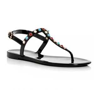 Brand New Stuart Weitzman Sawyer Sandals Jelly Thong Strappy Multicolor Stones Slingback